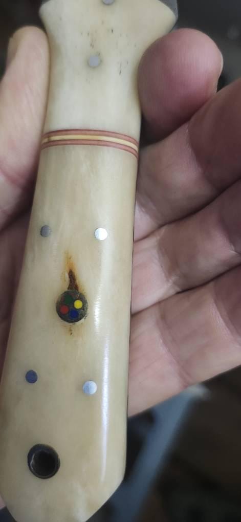 If i could give less stars this seller would get a minus 10! This item came damaged from the knife maker. The tiny inlays in the handles had the bone chipped all around them, abrown fil ler put in the broken bone! Chipped due to chiselled, not drilled smoothly as most knife makers do. Poor craftsmanship ruined what was to be a fine hand made collector piece! The hostility, insolence, and hatefulness or the owner compounded the issue. His poor craftsmanship and his refusal to honor his refund or replacement policies caused him to receive this revue. I will not buy anything from dishonest sellers!